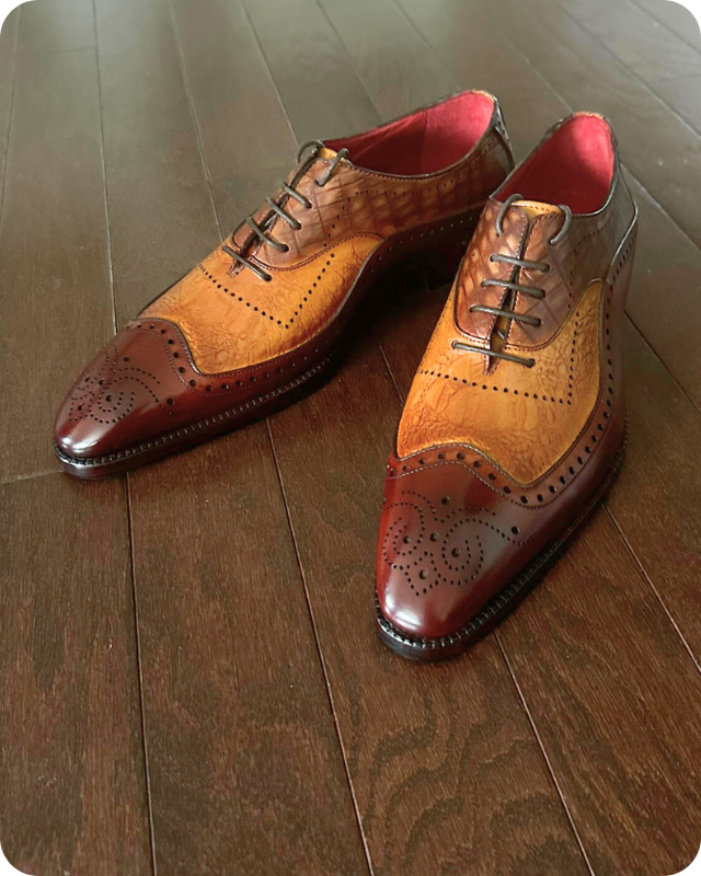 Tessio Dual-Shade Burnished Tan Wingtip Brogues